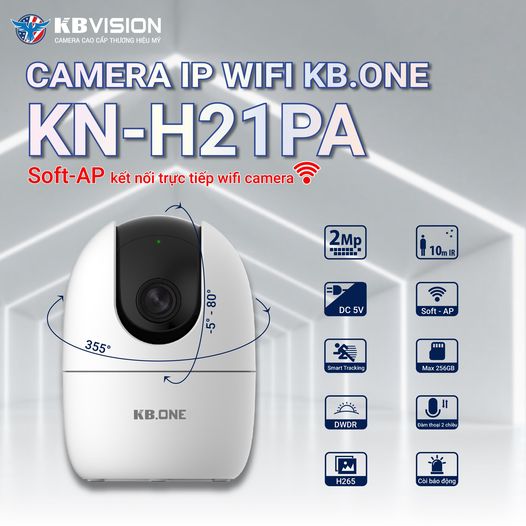 Camera IP Wifi KBONE KN-H21PA 2.0 Megapixel, quan sát 360 độ, tích hợp còi báo động, đàm thoại 2 chiều, theo dõi chuyển động